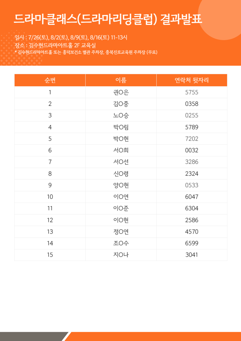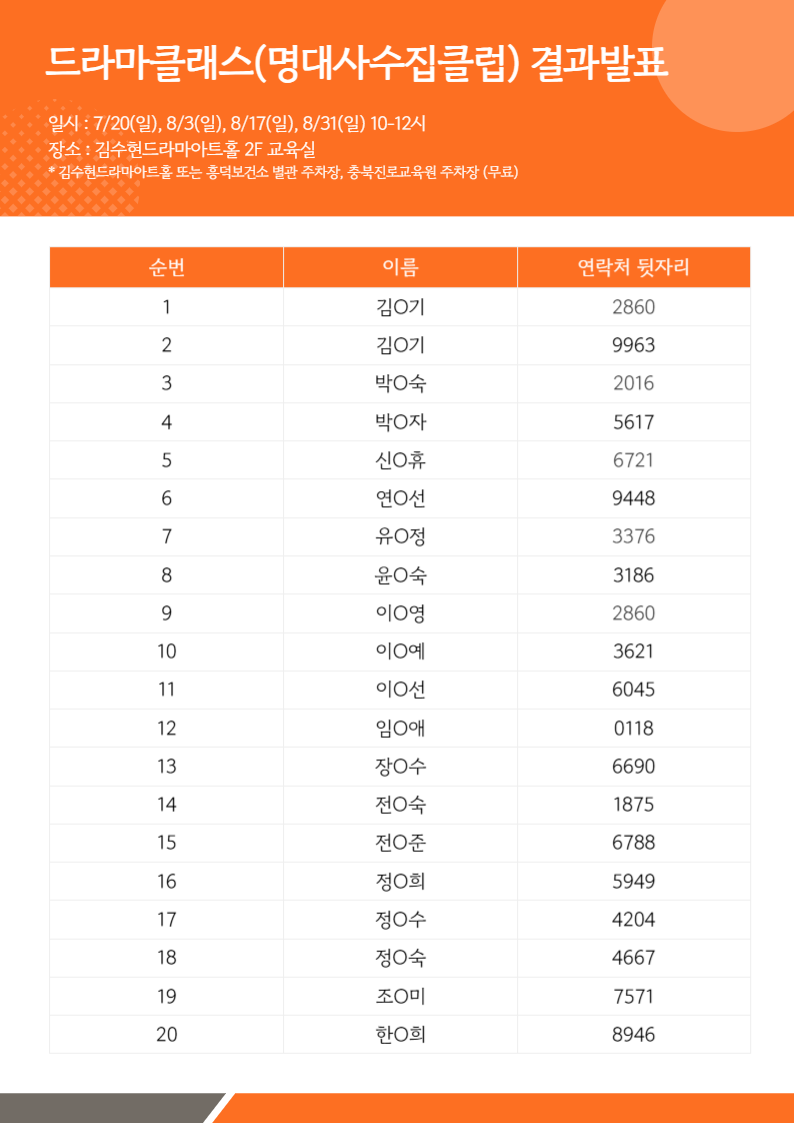 [발표] 2025 김수현드라마아트홀 드라마클래스 참여자 모집 결과 발표 (드라마같이보기)