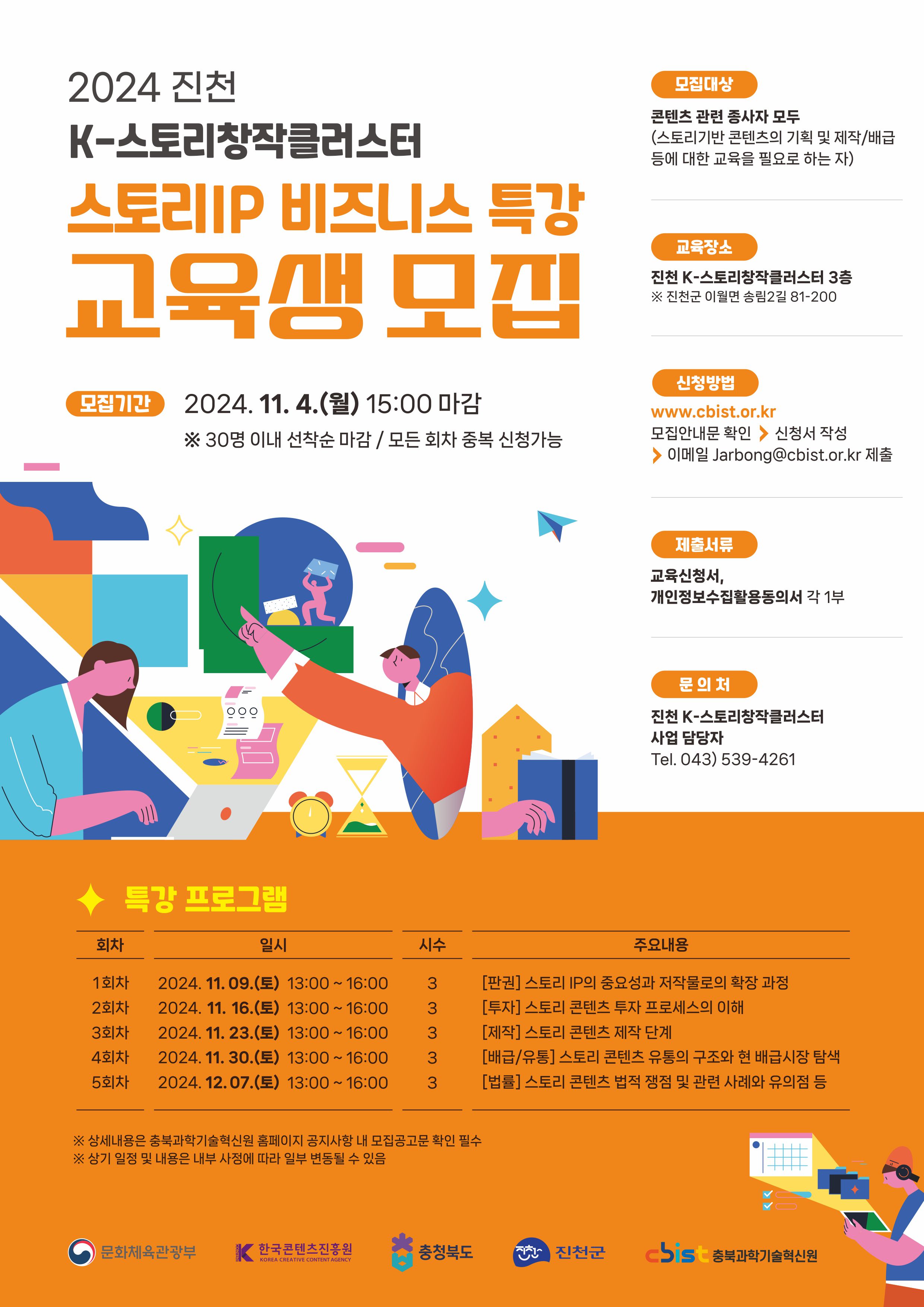 | 2024 진천 K-스토리창작클러스터 스토리 IP 비즈니스 특강 교육생 모집 | |