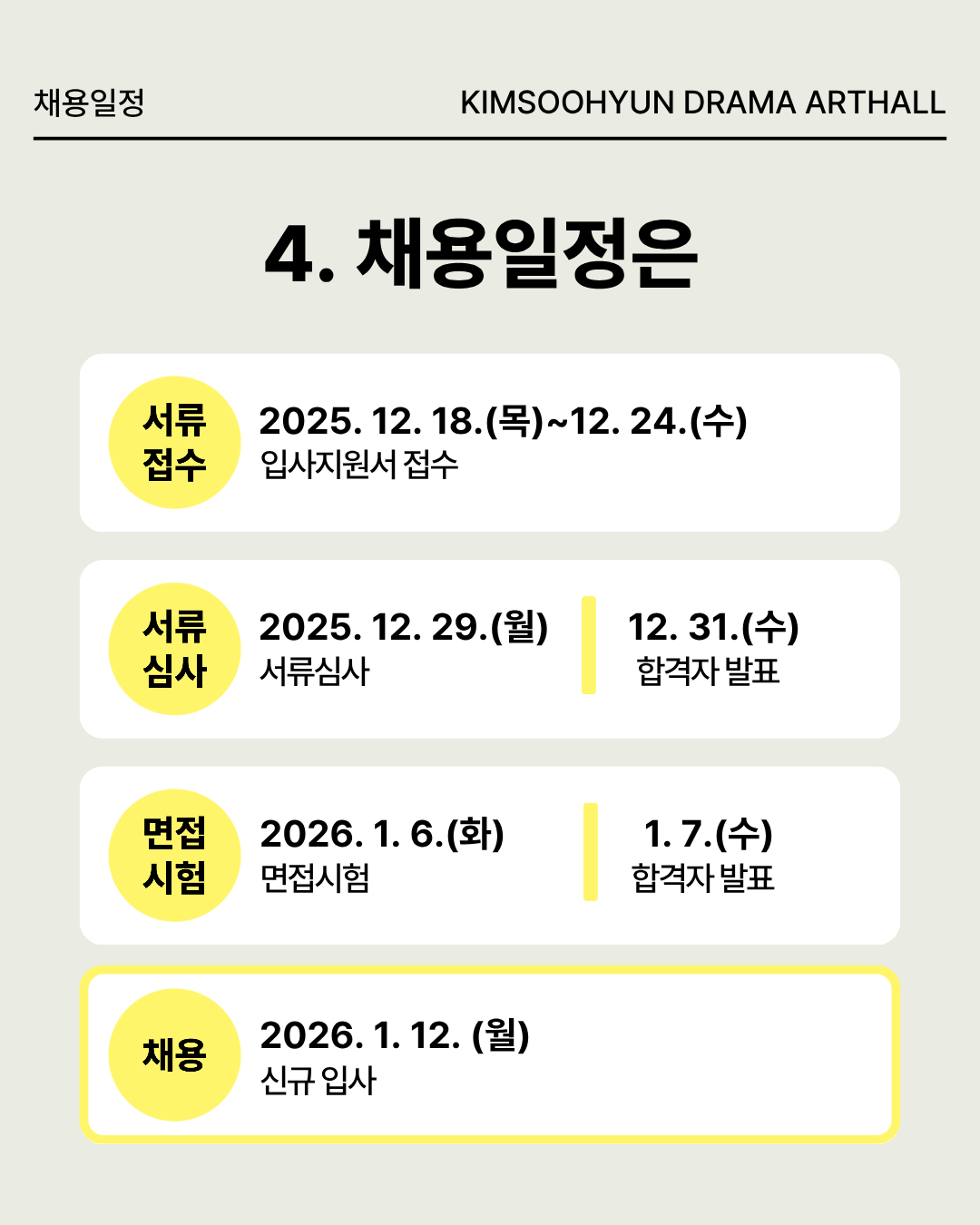[종료] 2026 김수현드라마아트홀 신규직원 채용